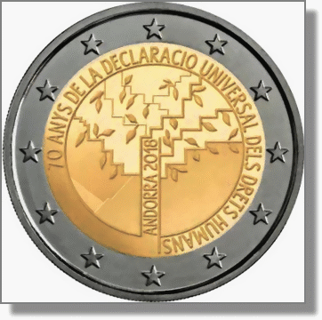 70 Jahre Deklaration der Menschenrecte /// 2 euro commemorative from Andorra 2018 - 70 years of the Universal Declaration of Human Rights /// Andorre - 2 euro commémorative 2018 - 70e anniversaire de la Déclaration Universelle des Droits de l'Homme