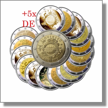 21 x 2 Euro Gedenkmünzen 2012 - 10 Jahre Euro Bargeld