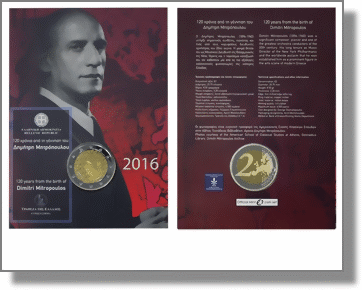 2 Euro 2016 Sondermünze aus Griechenland in Coincard mit Motiv 120. Geburtstag von Dimitri Mitropoulos. /// 2 euro 2016 commemorative coin from Greece in coin card with motiv 120 years from the birth of Dimitri Mitropoulos.