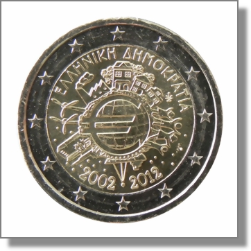 Im Jahr 2012, anlässlich 10 Jahre Euro Bargeld, prägte Griechenland eine 2 Euro Sondermünze.