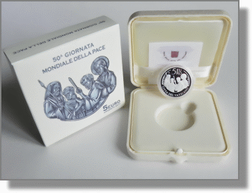 5 euro 2017 silver coin from Vatican in PROOF quality. Motiv - 50th WorldDay of Peace.